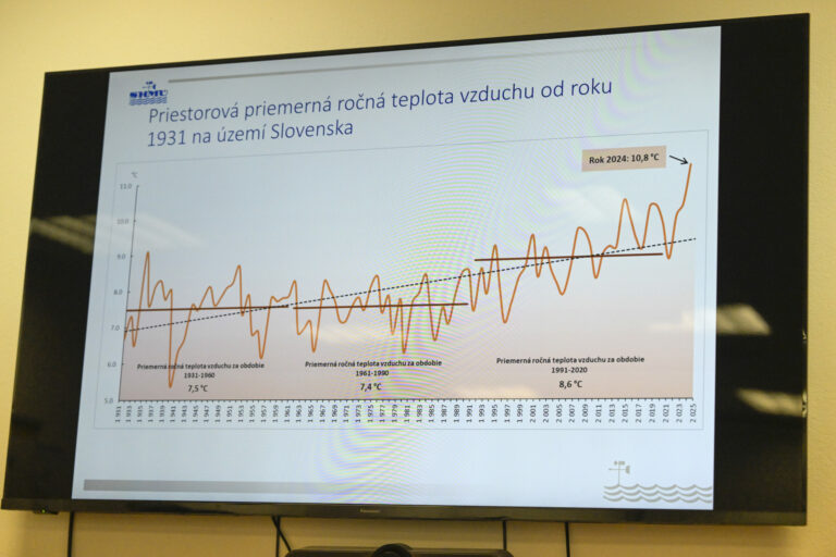 Prezentácia počas tlačovej besedy klimatológov Slovenského Hydrometeorologického Ústavu (SHMÚ) na tému: Klimatologické zhodnotenie roku 2024. Bratislava, 17. január 2025. Foto: SITA/Milan Illík