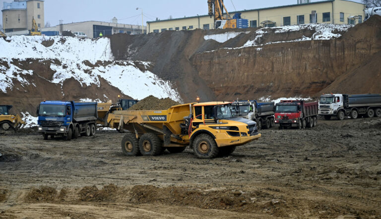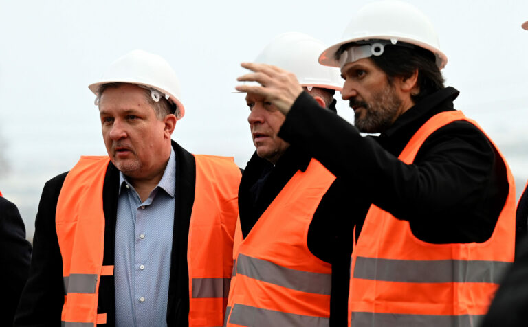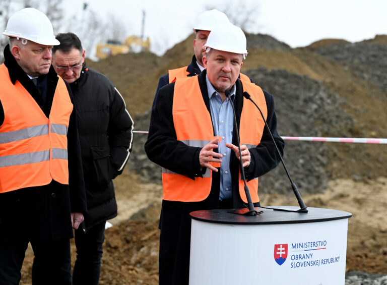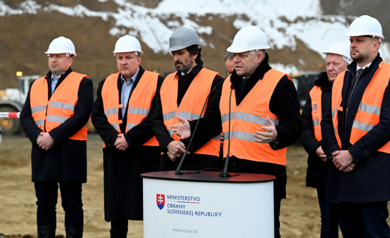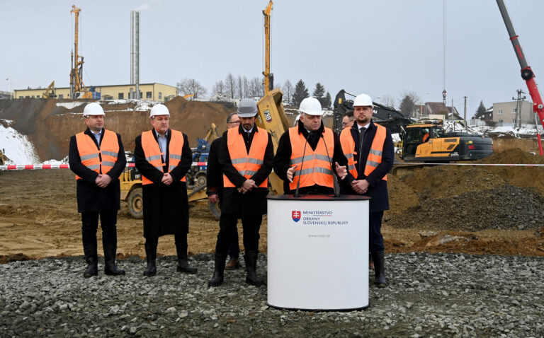 sledujú práce na výstavbe novej vojenskej nemocnice v areáli Fakultnej nemocnice J. A. Reimana v Prešove v rámci regionálneho výjazdu predsedu vlády SR na východe Slovenska. Prešov, 17. január 2025. Foto: SITA/Viktor Zamborský
