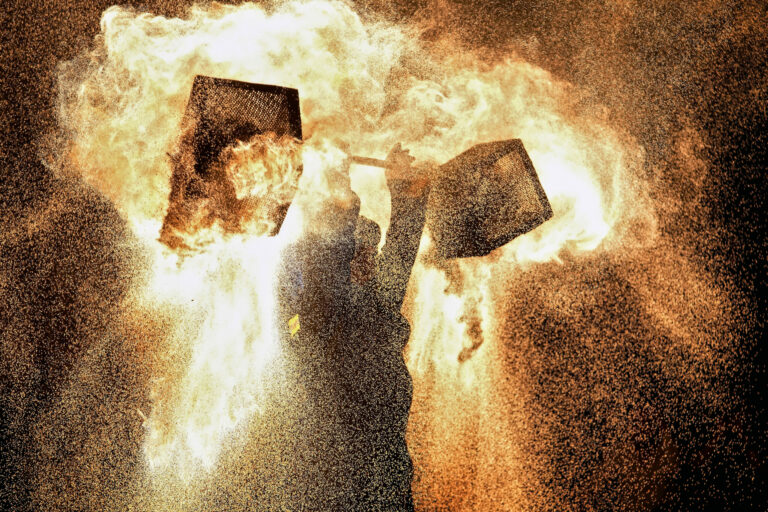 Čínsky umelec predvádza svoju ohňovú šou na jesennom festivale v Číne. Peking, 17. september 2024. Foto: SITA/AP
