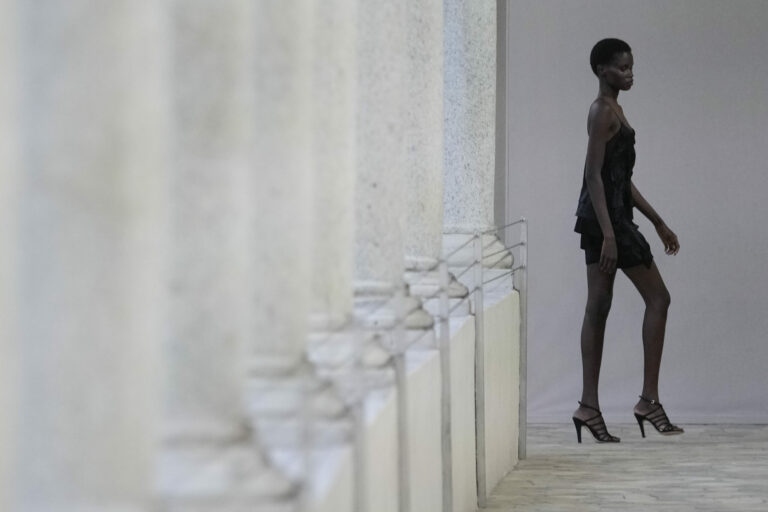 Modelka počas prehliadky kolekcie Alberta Ferretti jar/leto 2025. Miláno, 17. september 2024. Foto: SITA/AP