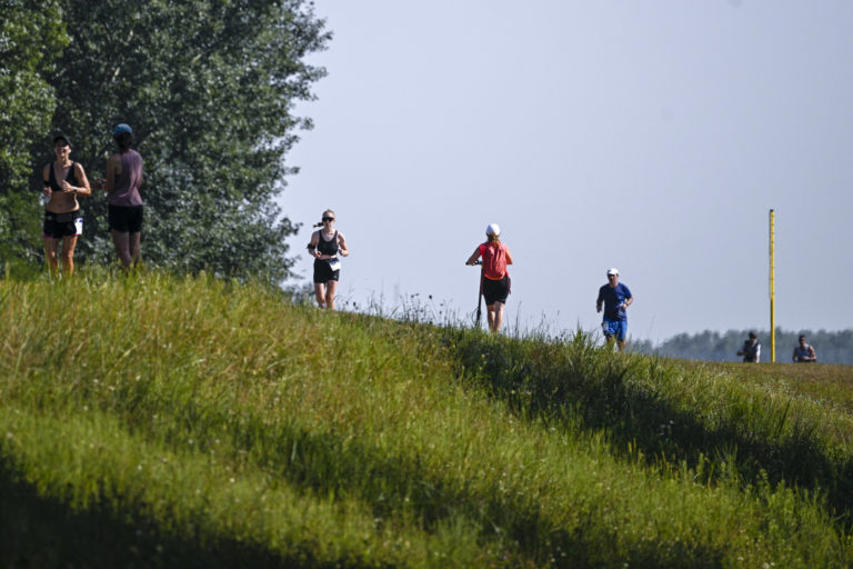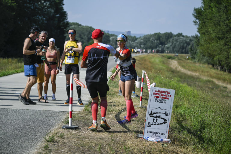 Atmosféra počas štafetového behu tímov - Štafetový beh 345 km od Tatier k Dunaju, Jasná – Bratislava. Bratislava, 18. august 2024. Foto: SITA/Milan Illík