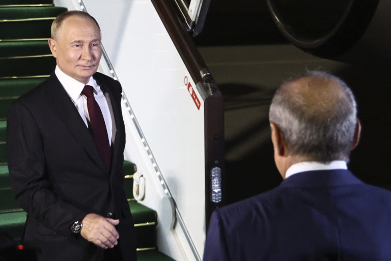 Ruský prezident Vladimir Putin pricestoval do Azerbajdžanu na dvojdňovú štátnu návštevu. Foto: Mikhail Tereshchenko, Sputnik, Kremlin Pool Photo via AP.