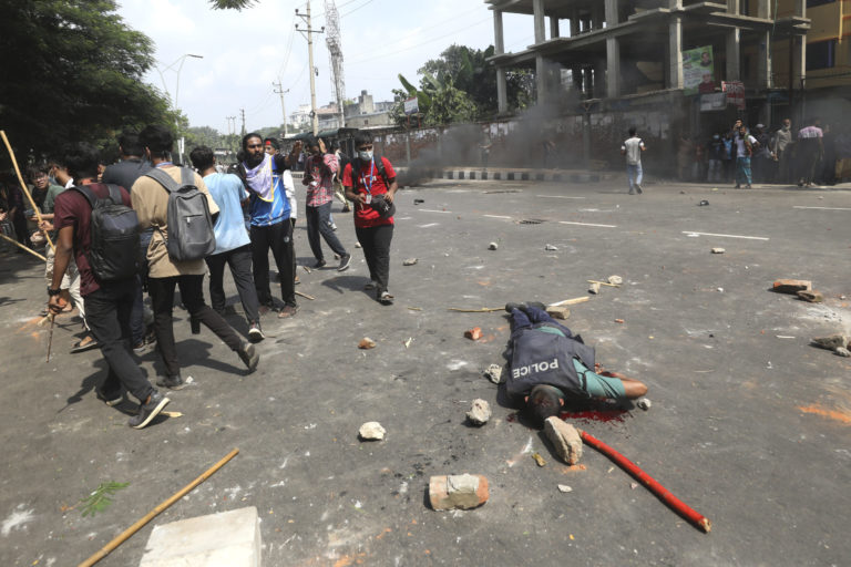 Študenti protestujú proti systému kvót vo verejnej službe v Dháke v Bangladéši, štvrtok 18. júla 2024. Foto: SITA/AP