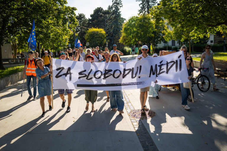 Účastníci počas občianskeho pochodu Za slobodu! Za demokraciu! Bratislava, 18. jún 2024. Foto: SITA/Jana Birošová