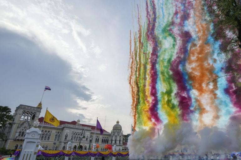 Dúhový ohňostroj na oslavu schválenia rovnosti manželstiev v Thajsku, 18. júna 2024. Foto: SITA/AP
