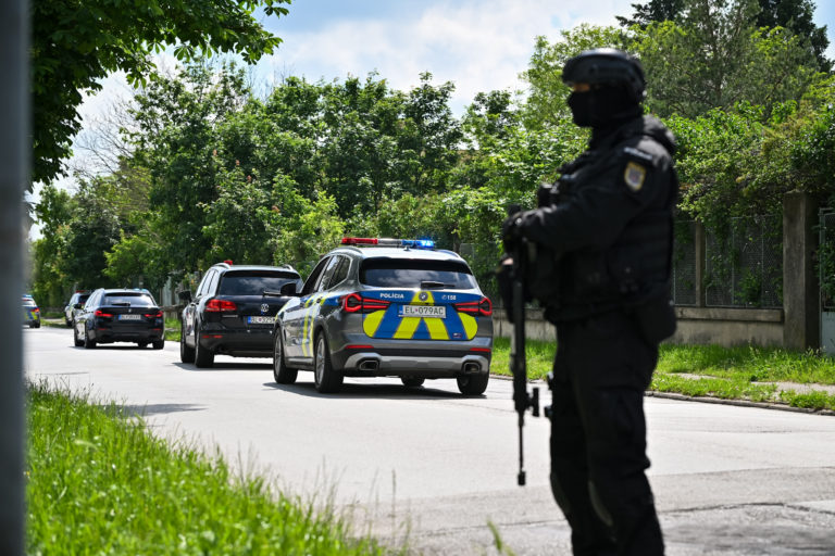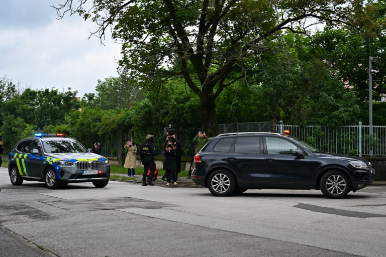 Bezpečnostné zložky odvážajú Juraja C. obvineného z obzvlášť závažného zločinu úkladnej vraždy spáchanej v štádiu pokusu v prípade útoku na premiéra Roberta Fica z pojednávania zo Špecializovaného trestného súdu (ŠTS) v Pezinku. Sudca sa stotožnil s prokurátorom, ktorý žiadal pre obvineného útekovú a preventívnu väzbu. Pezinok, 18. máj 2024. Foto: SITA