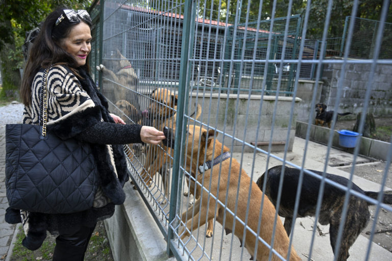 Herečka Hana Gregorová počas uvedenia a krstu charitatívneho kalendára Slobody zvierat 2024 v areáli útulku Slobody zvierat v Bratislave. Výťažok z predaja kalendára poputuje v plnej výške zvieratkám v opatere ich útulku. Bratislava, 18. október 2023. Foto: SITA/Milan Illík.