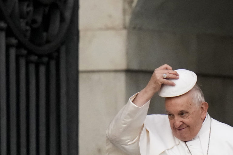 Pápež František si pri príchode na týždennú generálnu audienciu na Námestí sv. Petra vo Vatikáne drží solideo. Foto: SITA/AP.
