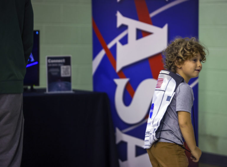 Malý chlapec počas návštevy vo Výukovom stredisku Challenger, kde sa dozvie viac informácií a histórii o NASA. Foto: Phillip L. Kaplan/The Blade via AP.