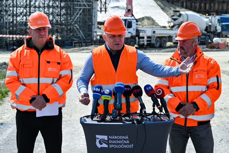 Stavba križovatky D1 a D4 v mestskej časti Bratislava – Vajnory počas kontrolného dňa predsedu vlády SR a ministra dopravy SR. Bratislava, 19. apríl 2024. Foto: SITA.