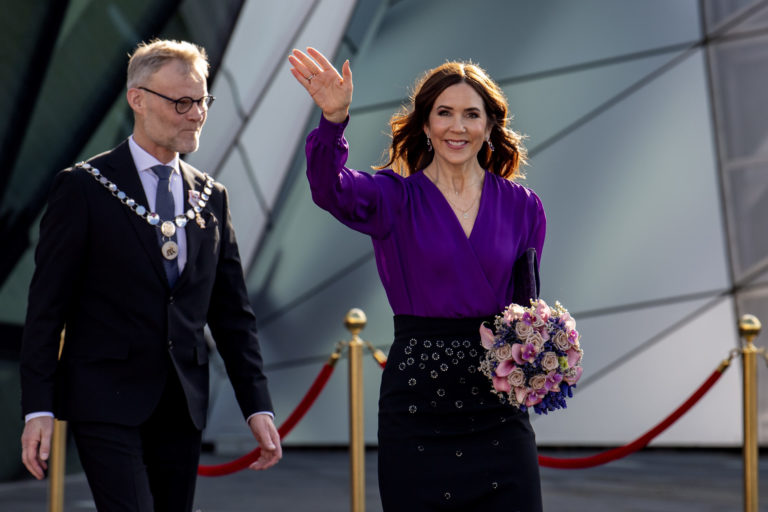 Dánska kráľovná Mária po účasti na oslavách 50. výročia založenia Aalborskej univerzity v Dome hudby. Foto: Rene Schutze/Ritzau Scanpix via AP)
