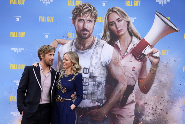 Herci Emily Bluntová (vpravo) a Ryan Gosling prichádzajú na európsku premiéru filmu "Fall Guy" v Berlíne- Foto: SITA/AP