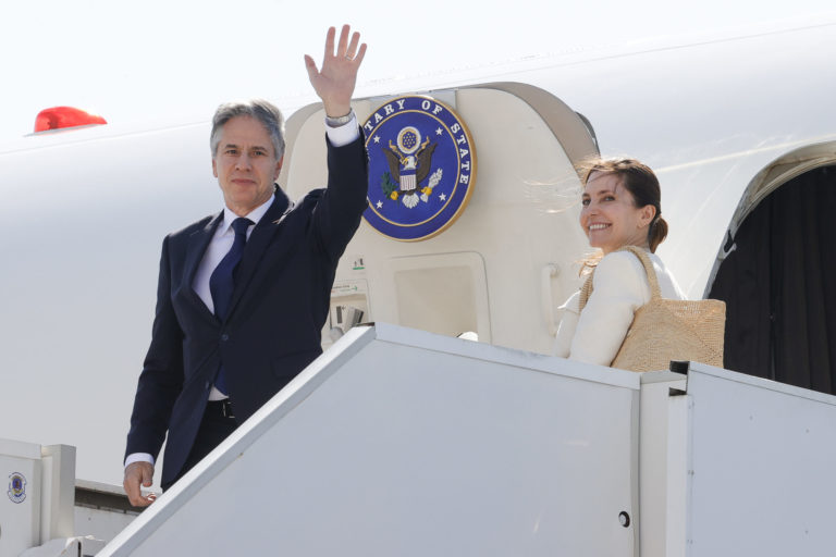 Americký minister zahraničných vecí Antony Blinken spolu s manželkou Evan Ryanovou. Foto: Ciro de Luca, Pool Photo via AP