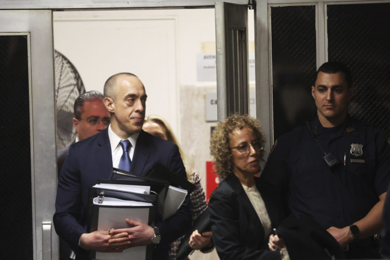 Advokáti bývalého prezidenta Donalda Trumpa Emil Bove a Susan Nechelesová na trestnom súde na Manhattane. Foto: Spencer Platt/Pool Photo via AP