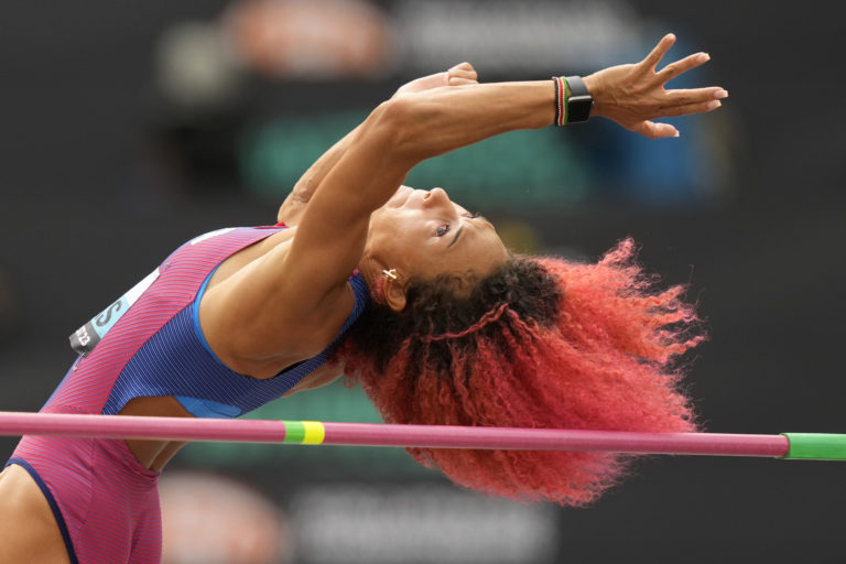 Taliyah Brooksová z USA počas skoku do výšky na MS v atletike v Budapešti. Foto: SITA/AP