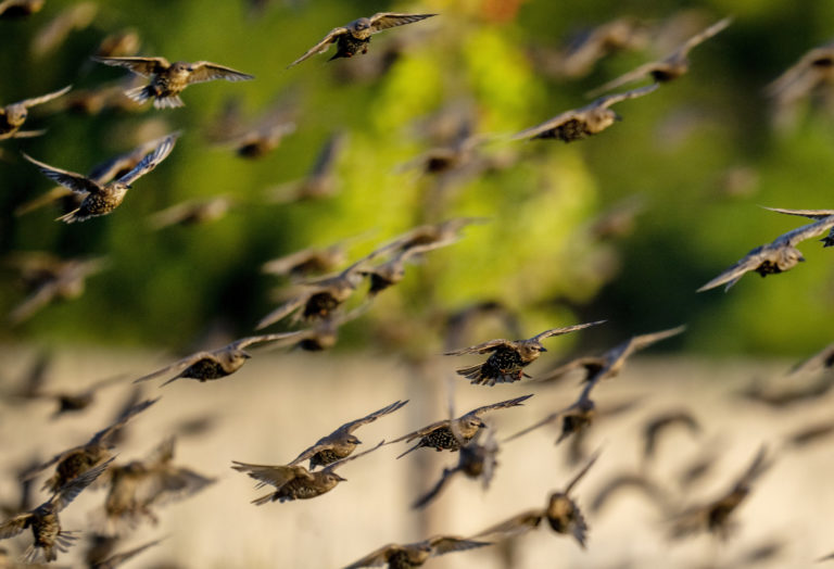 Kŕdeľ škorcov preletel cez lúku na okraji Frankfurtu v Nemecku. Foto: SITA/AP