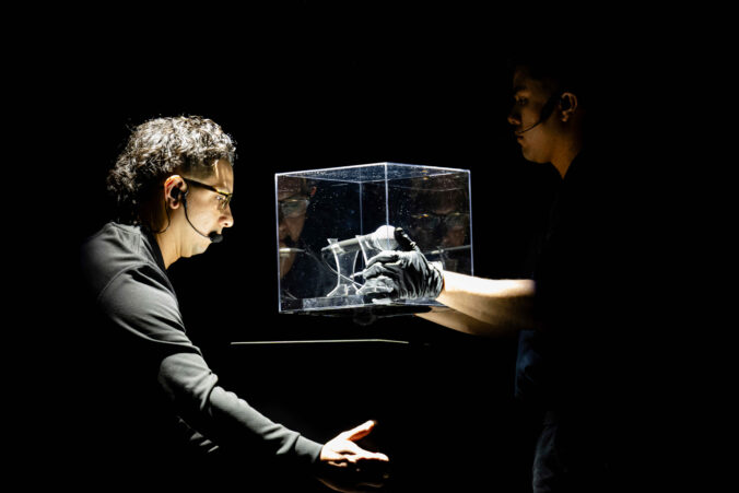Pracovník presúva mikrofón, ktorý používal Charlie Kirk na Utah Valley University v deň, keď bol smrteľne postrelený počas AmericaFestu 2025 organizácie Turning Point USA vo Phoenixe. Arizona, 18. decembra 2025 . Foto: AP Photo/Jon Cherry