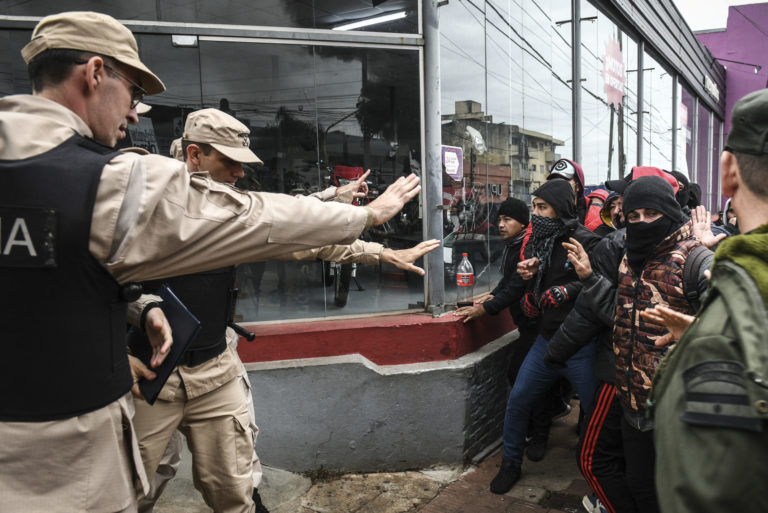 Demonštrácie za zvýšenie platov v argentínskom meste Posadas, 19. máj 2024. Foto: SITA/AP