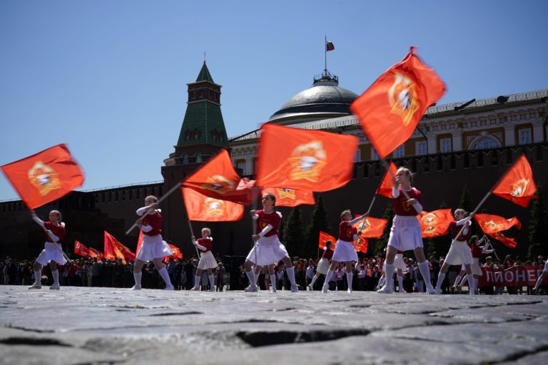 Komunistická strana usporiadala na Červenom námestí slávnostnú iniciáciu do priekopníkov, na ktorej sa zúčastnilo niekoľko tisíc školákov, venovanej dňu celozväzovej pionierskej organizácie pomenovanej po Vladimírovi Leninovi, ktorý sa oslavuje 19. mája. Foto: SITA/AP