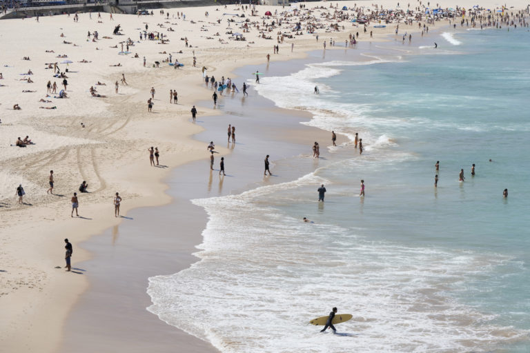 Ľudia na pláži Bondi Beach v Sydney. Juhovýchodná Austrália zažíva mimoriadne vysoké teploty. Foto: SITA/AP
