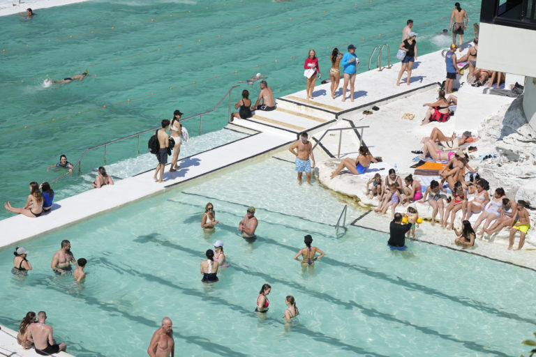 Ľudia v bazénoch na pláži Bondi Beach v Sydney. Foto: SITA/AP