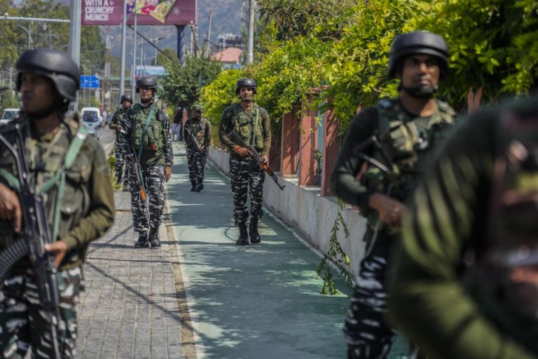 Indické polovojenské jednotky hliadkujú v Šrínagare v regióne Kašmír, ktorý je jedným z najviac militarizovaných území na svete. Foto: SITA/AP