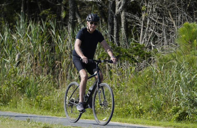 Americký prezident Joe Biden si stihol v stredu ráno aj zabicyklovať (2. august 2023). Foto: SITA/AP.