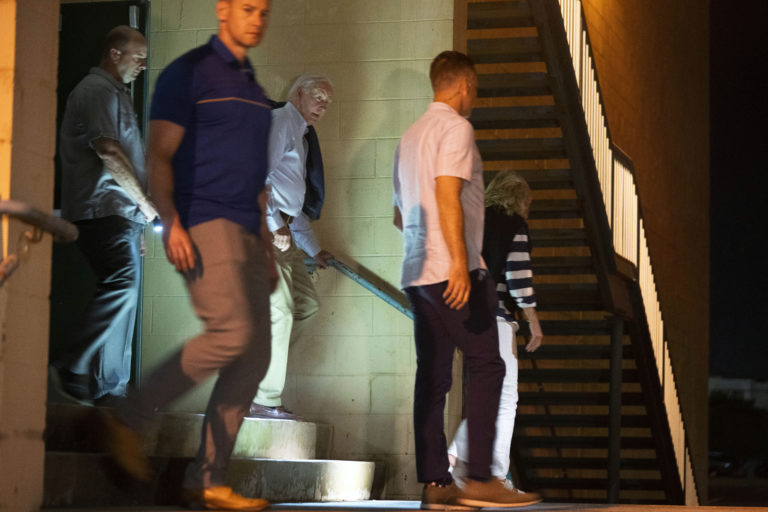 Prezident Joe Biden a prvá dáma Jill Biden v sprievode agentov tajnej služby opúšťajú kino zadnými dverami po pozretí filmu "Oppenheimer" v Rehoboth Beach (2. august 2023). Foto: SITA/AP