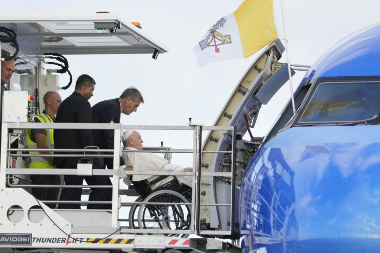 Pápež František začal v stredu 2. augusta 2023 svoju päťdňovú pastoračnú návštevu Portugalska, ktorá zahŕňa aj účasť na 37. Svetovom dni mládeže a na púti do svätyne vo Fatime. Foto: SITA/AP