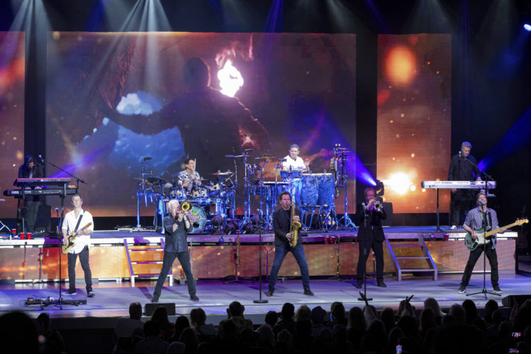 Americká rocková skupina Chicago počas koncertu v The Greek Theatre v Los Angeles. Foto: Willy Sanjuan /Invision/AP.