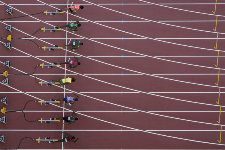 Juhoafričan Akani Simbine "ulial" štart v šprinte na 100 m na MS v atletike 2023 v Budapešti a bol diskvalifikovaný. Foto: SITA/AP.