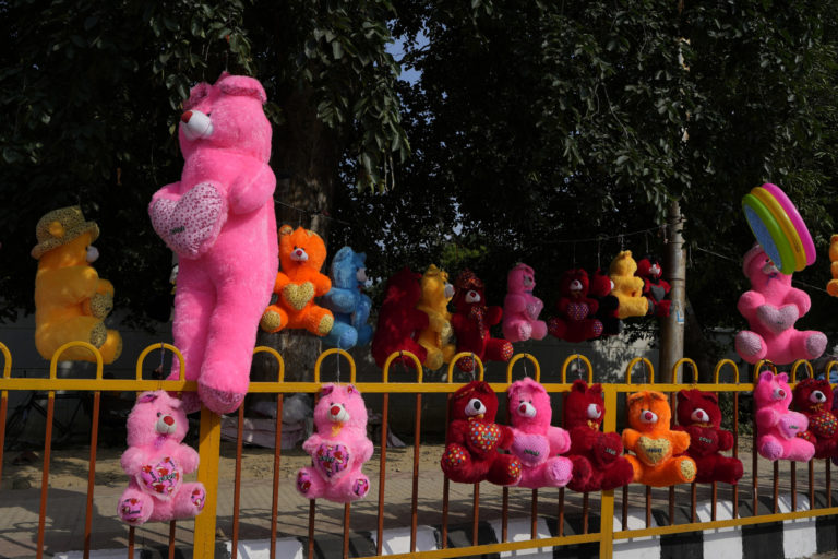 Vystavené hračky na predaj v indickom Prayagraji. Foto: SITA/AP.