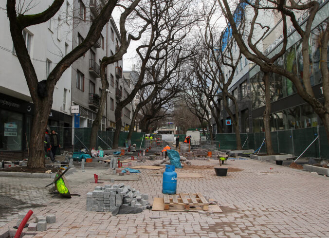 Stavebné práce a pokladanie dlažby na Námestí Slovenského národného povstavnia (SNP) v Bratislave počas rekonštrukcie najfrekventovanejšieho námestia v centre mesta v rámci projektu Živé námestie. Bratislava, 18. február 2026. Foto: SITA/Andrea Mezeiová