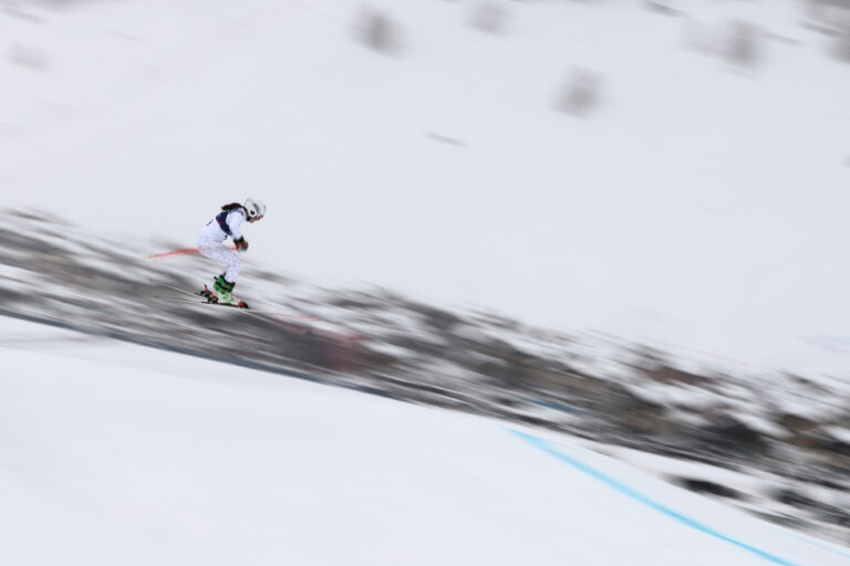Slovenská skikrosárka Nikola Fričová počas kvalifikácie žien v skikrose na Zimných olympijských hrách 2026 v Livigne. Taliansko, 20. februára 2026. Foto: AP Photo/Gabriele Facciotti