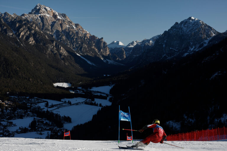 Rakúska lyžiarka Julia Scheibová schádza trať počas obrovského slalomu Svetového pohára žien v talianskom Kronplatzi. Taliansko, 20. januára 2026. Foto: AP Photo/Gabriele Facciotti