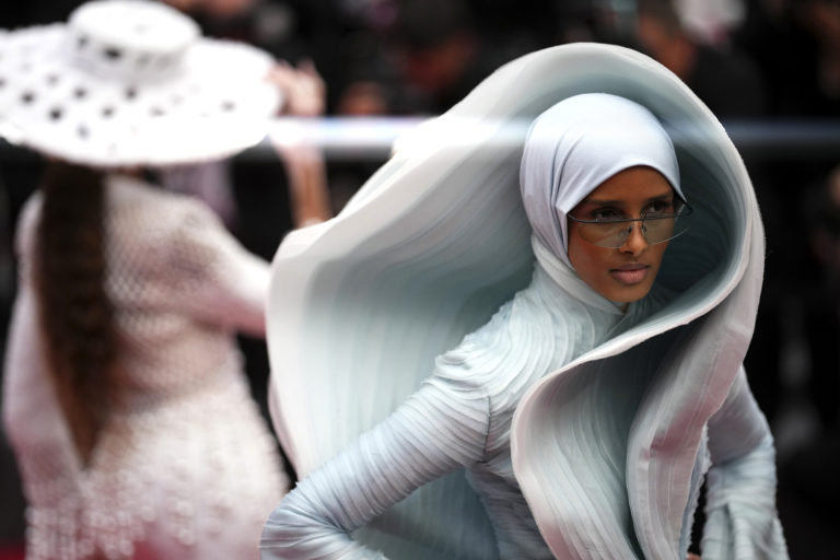 Rawdah Mohamedová pózuje fotografom pri príchode na premiéru filmu "The Apprentice" na 77. medzinárodnom filmovom festivale v Cannes. Foto: SITA/AP