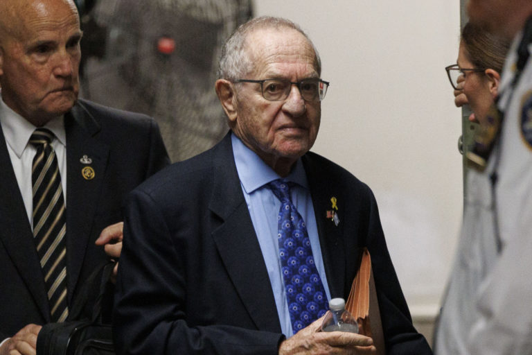 Americký právnik Alan Dershowitz sa vracia do súdnej siene na trestný proces s bývalým prezidentom Donaldom Trumpom. Foto: Sarah Yenesel/Pool Photo via AP