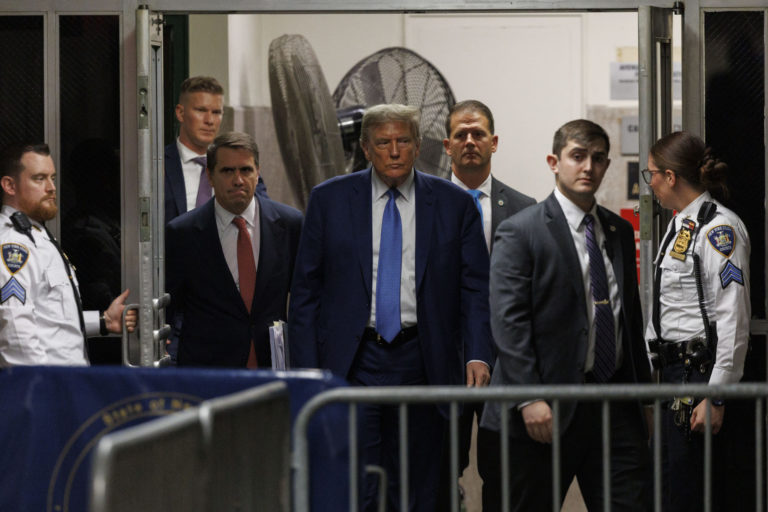 Bývalý prezident Donald Trump a právnik Todd Blanche sa po krátkej prestávke v New Yorku vracajú na mestský trestný súd. Foto: Sarah Yenesel/Pool Photo via AP