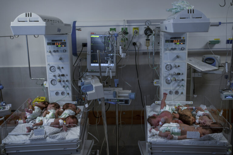 Predčasne narodené deti sú pripravené na prevoz do Egypta po tom, čo boli evakuované z nemocnice Shifa v pásme Gazy. Foto: SITA/AP.