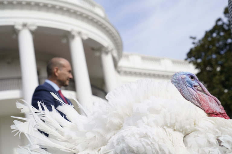 Jeden z dvoch národných moriakov, ktorí dostali milosť na Deň vďakyvzdania v Bielom dome vo Washingtone. Foto: SITA/AP.