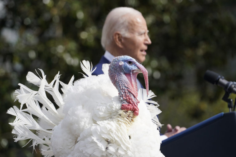 Americký prezident Joe Biden udelil milosť národným moriakom na Deň vďakyvzdania v Bielom dome vo Washingtone. Foto: SITA/AP.