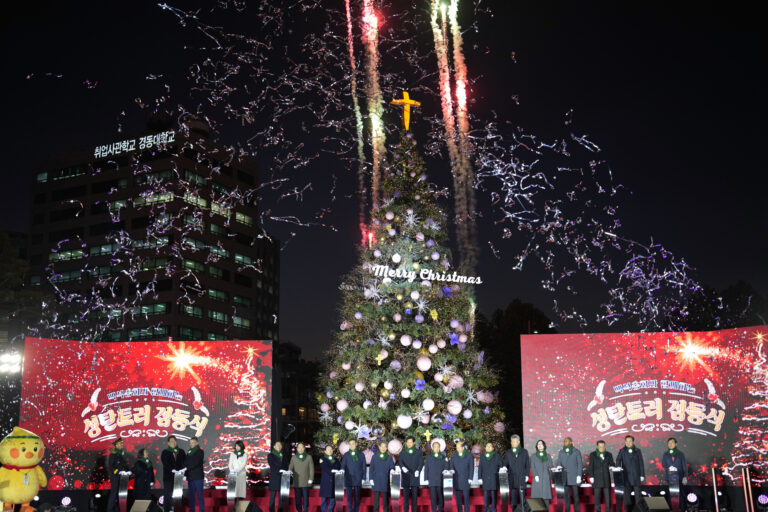 Ohňostroj počas rozsvietenia vianočného stromčeka na námestí v Soule v Južnej Kórei. Foto: SITA/AP.
