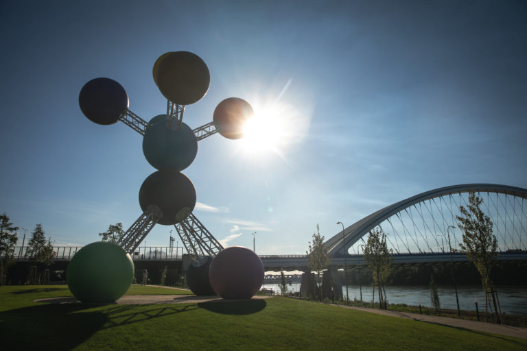 Socha Octahedral Body na predĺženej dunajskej promenáde v Eurovea City, ktorej autorom je slovenský umelec Viktor Frešo. Dielo vyhralo verejnú súťaž o vizuálne umelecké dielo, ktorú vyhlásil developer JTRE na jar minulého roka. Foto: SITA/Diana Černak.