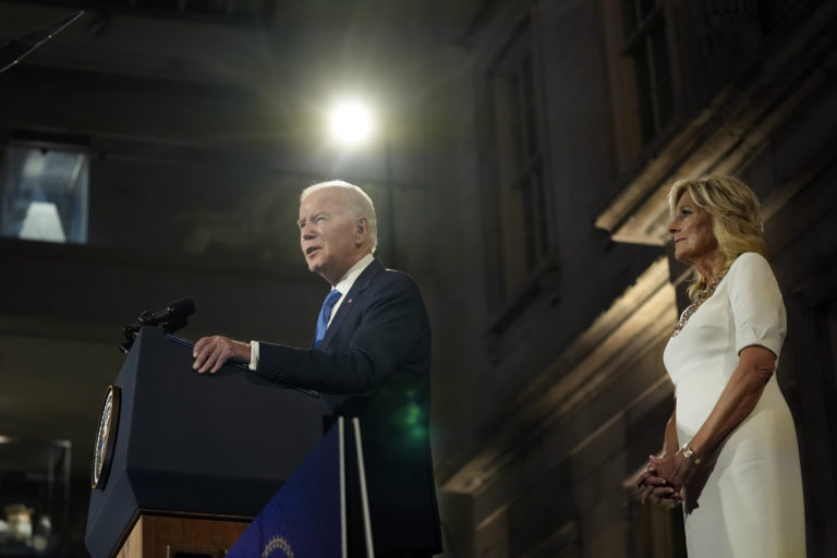 Joe Biden hovorí na recepcii pre lídrov v Metropolitnom múzeu umenia v New Yorku. Americký prezident sa zúčastňuje na 78. Valnom zhromaždení OSN. Foto: SITA/AP.