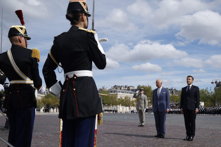 Britský kráľ Karol III. začal návštevu Francúzska a privítal ho aj francúzsky prezident Emmanuel Macron. Foto: Yoan Valat, Pool via AP.