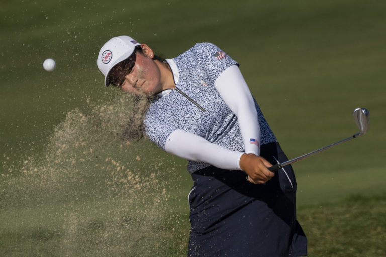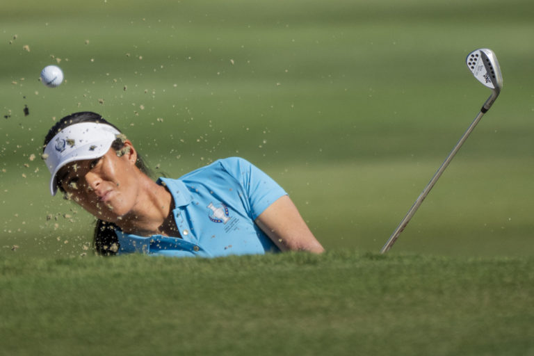 Golfistka amerického tímu Allisen Corpuzová počas tréningu na Solheim Cup. Foto: SITA/AP.