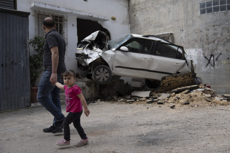 Zničené vozidlo počas izraelského útoku na Západnom brehu Jordánu. Tulkarem, 21. apríl 2024. Foto: SITA/AP