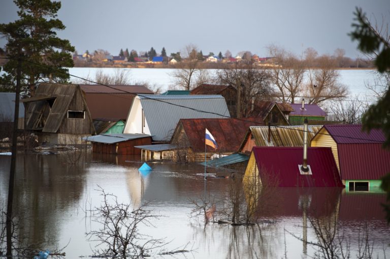 Pohľad na zaplavenú oblasť 1 968 km východne od Moskvy. Išim, 21. apríl 2024. Foto: SITA/AP