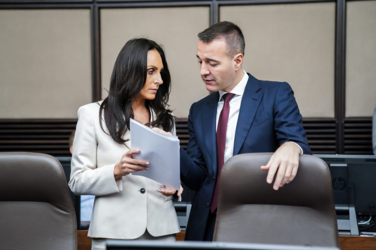 Zľava: Ministerka kultúry SR Martina Šimkovičová a vicepremiér a minister obrany SR Robert Kaliňák počas rokovania 17. schôdze vlády SR. Foto: SITA/Úrad vlády SR.