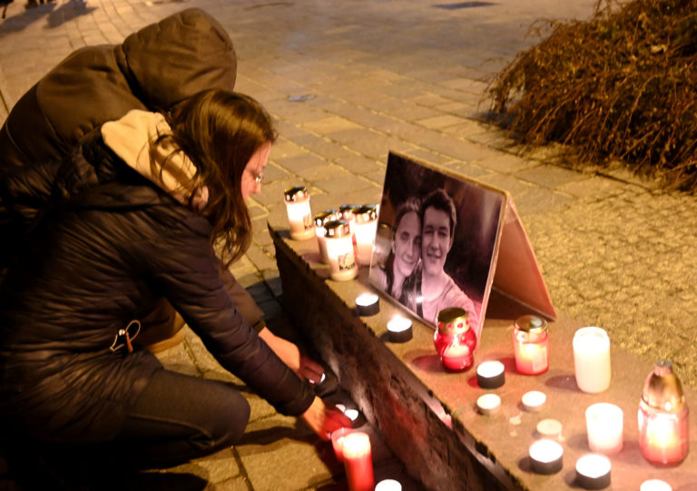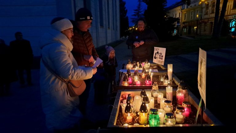 Spomienka na šieste výročie vraždy novinára Jána Kuciaka a jeho snúbenice Martiny Kušnírovej na Námestí sv. Egídia v Poprade. Foto: SITA/Mária Frisová.